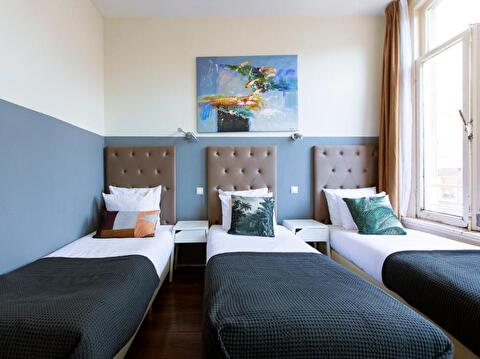 Stay in our Budget Triple Room, a compact space ideal for small groups. The room features a flat-screen TV with cable channels and a sink. Shared bathroom facilities make this a budget-friendly choice for guests. Please note that these rooms are located on the top floor (4th floor), where there is no shower. Guests in this room are welcome to use the showers on the other floors.