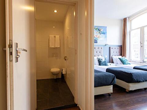 Experience a comfortable stay in our Triple Room, perfect for small groups or families. The room includes box-spring beds and a flat-screen TV with cable channels. Refresh yourself in the private bathroom, equipped with a shower, hairdryer, and free toiletries. Some Triple Rooms are situated in the basement, offering more space than those on the upper floors.