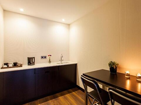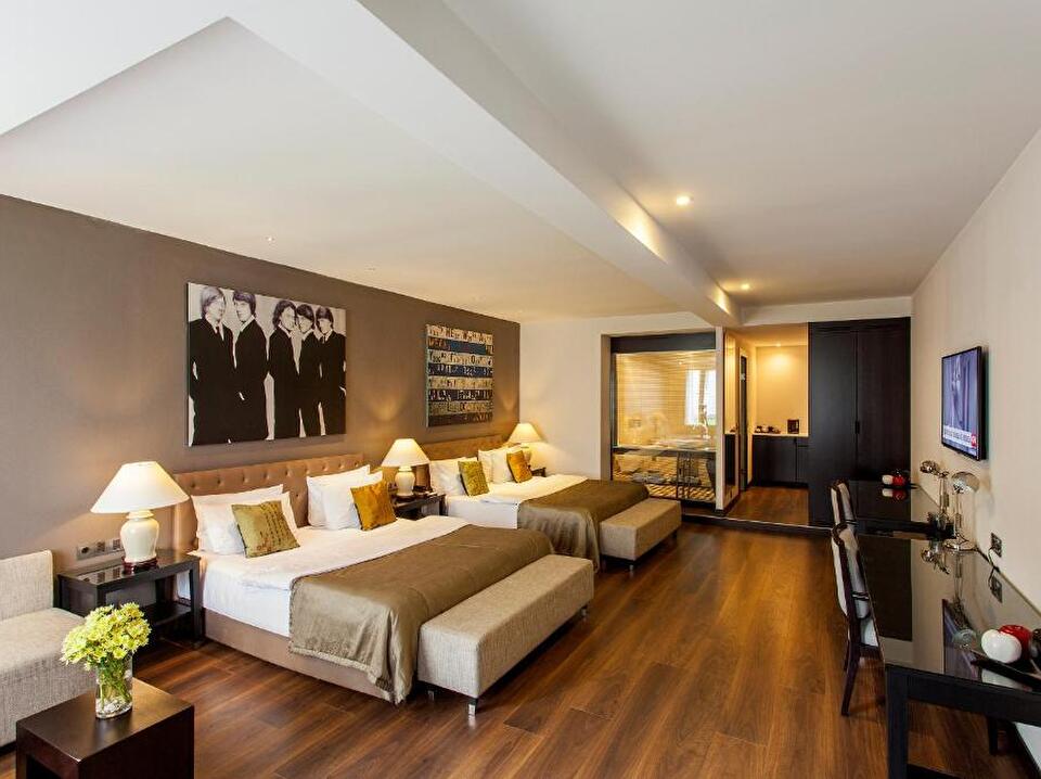 Experience comfort and modern design in our Family Suite. This spacious suite includes a convenient kitchenette for preparing meals, an LED smart TV for entertainment, and free WiFi to stay connected. Relax in air-conditioned comfort on a pillow top mattress. The modern bathroom features Italian marble, a refreshing rain shower, and complimentary toiletries. This suite provides a stylish and comfortable retreat for your family.