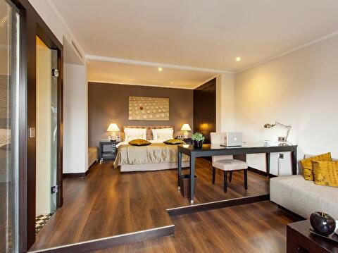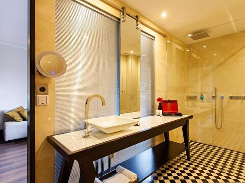 Enjoy a comfortable stay in our stylish Junior Suite. This suite features an LED smart TV, free WiFi, and air conditioning for your convenience. Sleep soundly on a pillow top mattress and refresh yourself in a modern bathroom with Italian marble, a rain shower, and complimentary toiletries. Some suites also offer a balcony, adding to your relaxation and enjoyment.