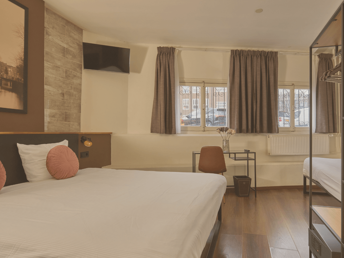 Enjoy our Twin Room with canal view including free high speed WiFi, TV and safe.