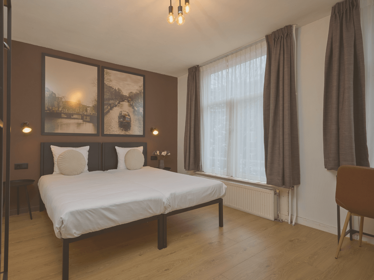 Enjoy our Twin Room with canal view including free high speed WiFi, TV and safe.