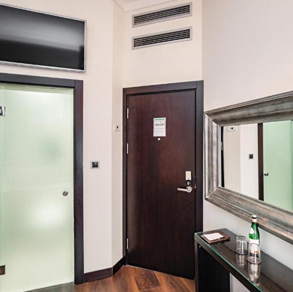 Discover the spacious Lower Ground Floor Quadruple Room, perfect for families or small groups. Situated in the basement level, this room includes comfortable beds with pillow top mattresses, an LED smart TV, and free WiFi. Stay cool with air conditioning and enjoy the contemporary bathroom with Italian marble and complimentary toiletries. This room offers ample space and a welcoming environment for an enjoyable stay.
