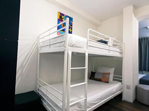 Unwind in our spacious Standard Quadruple Room, ideal for families or groups. Located on the ground floor, this room features two twin beds and one bunk bed. Stay entertained with a flat-screen TV with cable channels and keep your valuables secure in the safe. The private bathroom includes a shower, hairdryer, and complimentary toiletries for your convenience.