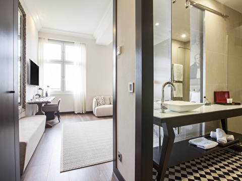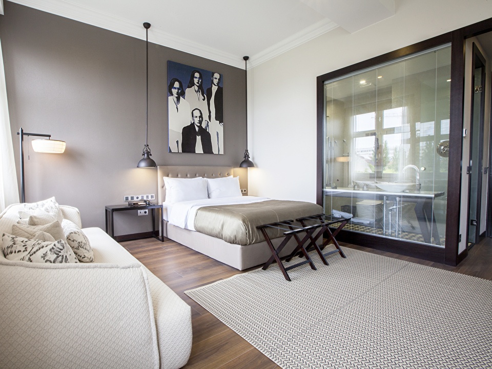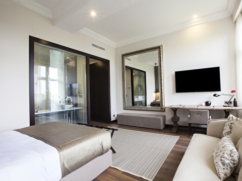 Indulge in our spacious Grand Deluxe Double Room, offering modern and stylish design. The room features free WiFi, a smart LED TV, and air conditioning. Relax on a pillow top mattress and enjoy the modern bathroom, complete with Italian marble, a rain shower, and complimentary toiletries. Ideal for those seeking elegance and comfort, this room ensures a memorable stay.