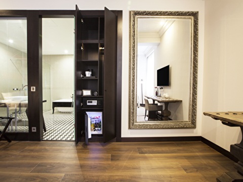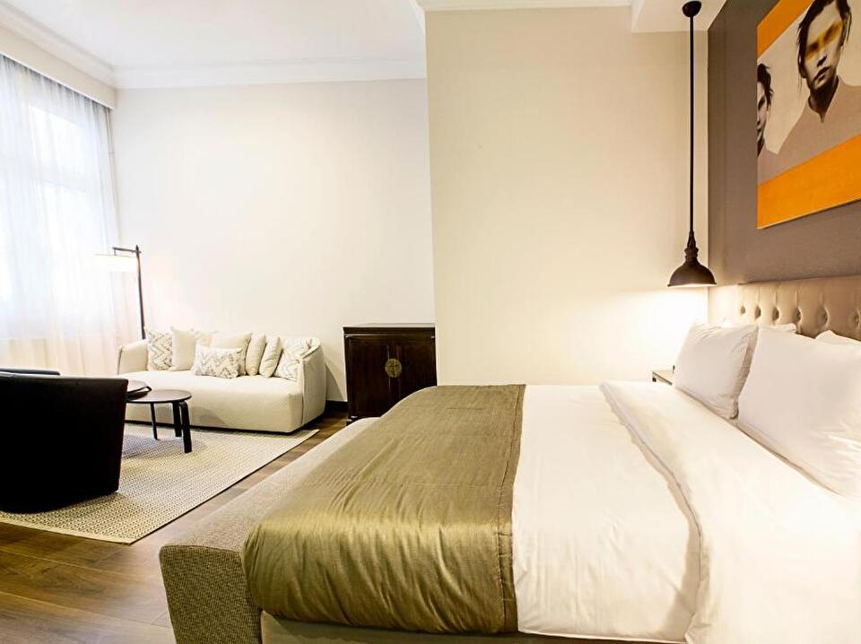 Enjoy a stylish stay in our Junior Suite, featuring modern design and ample space. This suite includes free WiFi, a smart LED TV, and air conditioning. Rest on a pillow top mattress and enjoy the modern bathroom with Italian marble, a rain shower, and complimentary toiletries. Perfect for a sophisticated getaway, this suite provides everything you need for a comfortable stay.