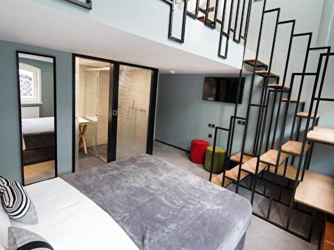 Experience a unique stay in our air-conditioned Duplex Studio, which spans two floors. This spacious studio features a Smart TV for your entertainment, a refrigerator for your refreshments, and a laptop-size safe for your valuables. Enjoy the convenience of a private bathroom with a shower. Perfect for longer stays, this studio offers a comfortable and flexible living space across two levels.